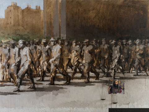 Front deals with the existence of evil, destruction, and suffering. But no matter how much destruction is depicted, in my works I strive to attain and retain an overall visual order; perhaps, even harmony. After all, painting is a fundamentally constructive process of putting shapes and experiences together, whatever its subject may be. The unique potential of art is to express any crisis or horror within an overarching aesthetic structure. It is an open question whether we can transcend the tragic encounters with the dramas of reality and still retain a vision of the overall harmony of being. Art can give no answer, but it may offer at least some guidance on this deeply personal quest.